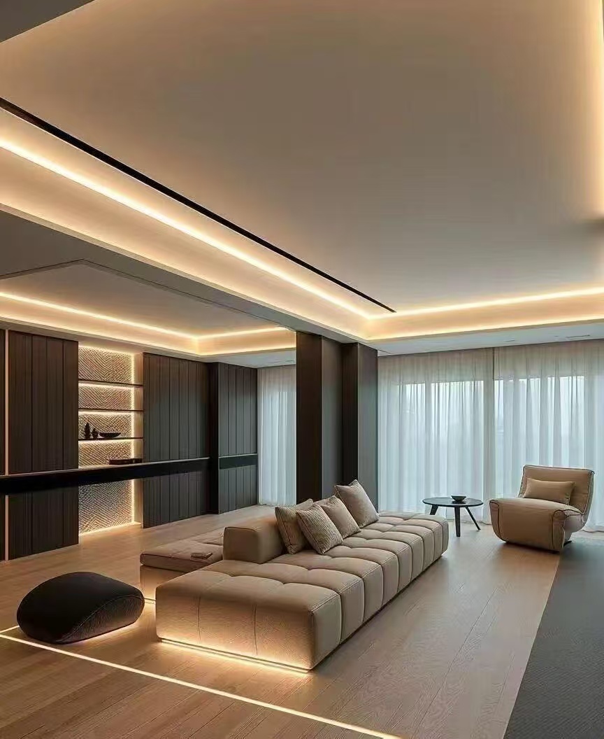 應(yīng)用:無主燈設(shè)計(jì)、隱藏式燈帶、軌道射燈等,提升空間的現(xiàn)代感。